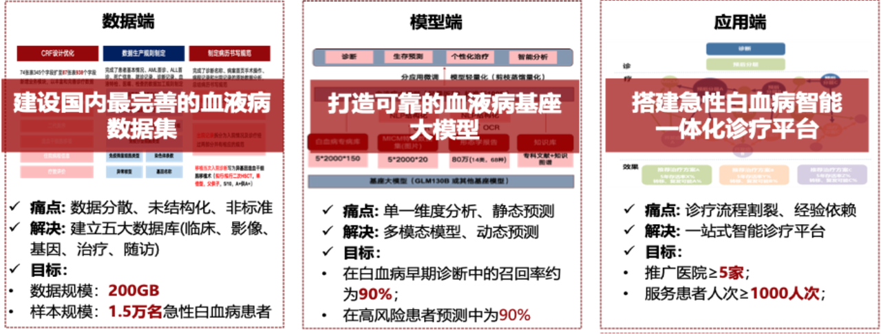 人工智能辅助急性白血病诊疗平台,通过构建智能化的急性白血病专病数据库,开发AI辅助的精准诊断辅助和预后评估平台,以应对急性白血病治疗标准化、疾病异质性等挑战